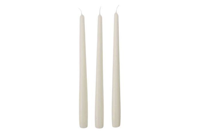This 12 inch "White" taper candle is “drip resistant” under ideal conditions, but as with all candles, a draftt or breeze may cause minimal dripping. Due to the nature of the taper candle making dipping process, base size may vary. A wax candle fitter will ensure a good fit into a standardd holder.