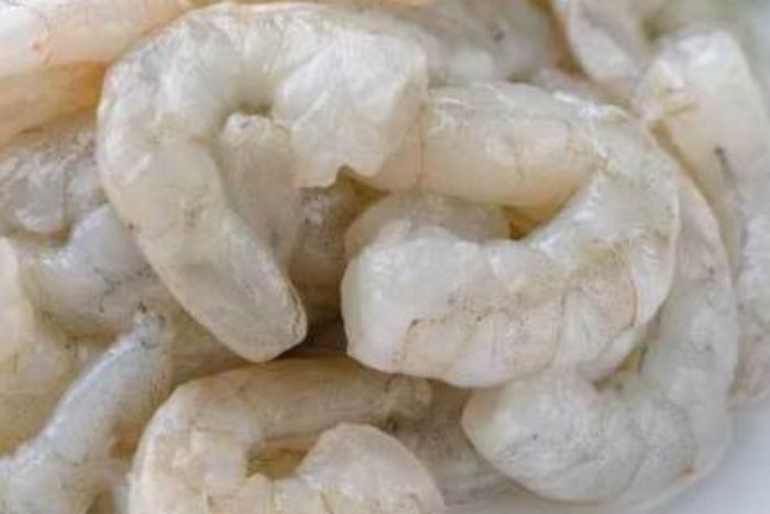 These cocktail-sized (peeled and deveined) raw shrimp have a mild flavor. Raw shrimp meat is translucent white to gray. Cooked meat is white with pink streaks, and soft in texture. Shrimp cook quickly; two minutes should be sufficient. They’re done when tails curl and meat is no longer translucent.