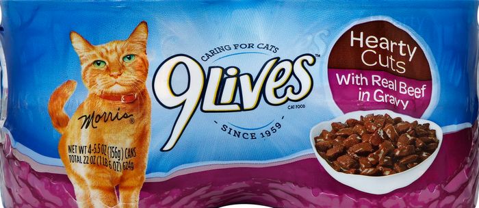 9 Lives Cat Food, with Real Beef in Gravy, Hearty Cuts - 4 x 5.5 Ounces