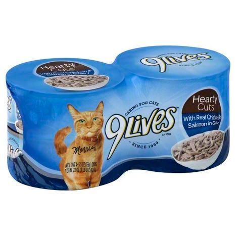 9Lives Cat Food, with Real Chicken & Salmon in Gravy, Hearty Cuts - 4 x 5.5 Ounces