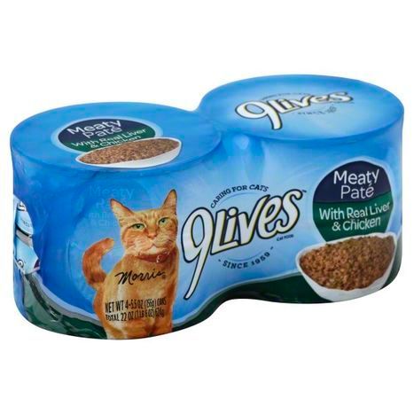 9Lives Cat Food, with Real Liver & Chicken, Meaty Pate - 4 x 5.5 Ounces