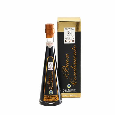 The 'Il Buon Condimento' Balsamic Vinegar of Modena IGP from Dodi is produced in the region of Emilia Romagna.nThis Balsamic Vinegar of Modena IGP is obtained by aging a mixture of cooked grapes must and wine vinegar for a more than three years in large wooden barrels.nnFlavor: Delicate fruity with a well balanced acidity at the end. nnDensity: medium-light density.nnPairings: It is excellent salads, heirloom tomatoes, meat or fish. nnIngredients: Cooked Grape Must, Wine. nnCompany History:nSince 1891, generations of the Dodi family have carefully passed down their most precious heirloom: the highest quality wood casks for aging balsamic vinegar. Today, the company is synonymous with the Italian condiment.