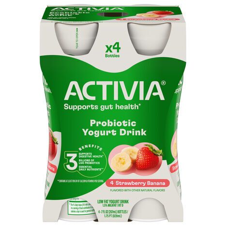 Activia Probiotic Low Fat Strawberry Banana Yogurt Drink - 4 x 7 Fluid Ounces