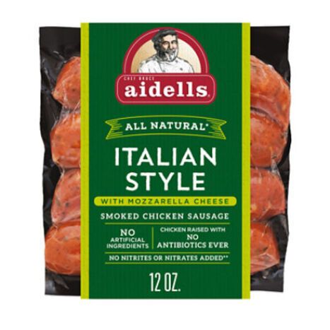 Chicken, Mozzarella Cheese (Pasteurized Milk, Cultures, Salt, Enzymes, Cellulose Added to Prevent Caking), Contains 2% or Less of the Following: Parsley, Roasted Garlic (with Olive Oil), Salt, Spices, Paprika, Sugar, Basil, Celery Powder, Sea Salt. Stuffed in a Natural Pork Casing.