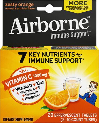 Airborne Zesty Orange Vitamin C 1000 mg Immune Support - 2 x 10 Tablets