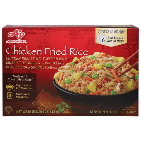 Cooked Rice, Cooked Chicken Breast Meat Strips (Chicken Breast Meat, Water, Sugar, Modified Food Starch, Salt, Sodium Phosphate, Garlic Powder, Celery Powder), Cooked Seasoned Eggs (Whole Eggs, Whey [Milk], Water, Contains 2% or Less of the Following: Soybean Oil Dried Cream Cheese (Pasteurized Milk and Cream, Cheese Culture, Salt, Carob Bean Gum), Modified Food Starch, Salt, Natural Flavor, Artificial Butter Flavor [Medium Chain Triglycerides, Artificial Flavors), Xanthan Gum, Citric Acid, Guar Gum), Bacon (Cured with Water, Salt, Sugar, Sodium Phosphates, Sodium Erythorbate, Sodium Nitrite), Soy Sauce (Water, Wheat, Soybeans, Salt, Alcohol), Carrots, Onions, Edamame Soybeans, Contains Less than 2% of Each of the Following: Canola Oil, Rendered Bacon Fat (TBHQ and Citric Acid Added to Improve Stability), Sweet Cooking Rice Wine (Water, Mirin [Rice, Alcohol, Salt, Enzyme, Koji {Aspergillus Oryzae}], Dextrose, Corn Syrup Solids, Lactic and Succinic Acids), Green Onions, Salt, Sugar, Spices, Caramel Color, Garlic Powder, Disodium Inosinate and Disodium Guanylate.