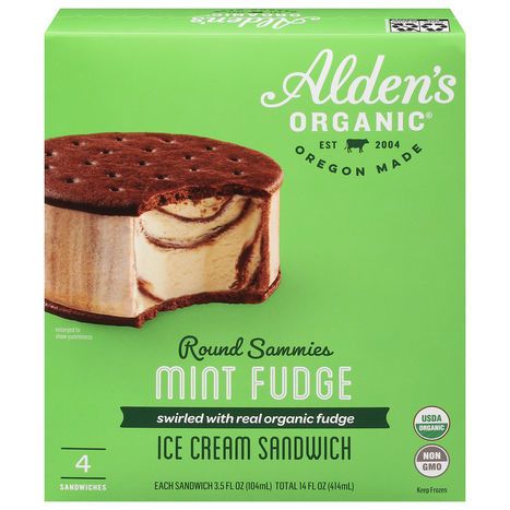 Alden's Organic Ice Cream Sandwich, Mint Fudge, Round Sammies - 4 x 3.5 Fluid Ounces