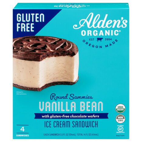 Aldens Organic Ice Cream Sandwich, Round Sammies, Gluten Free, Vanilla Bean - 4 x 3.5 Fluid Ounces