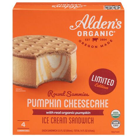 Alden's Organic Round Sammies Pumpkin Cheesecake Ice Cream Sandwich - 4 x 3.5 Fluid Ounces