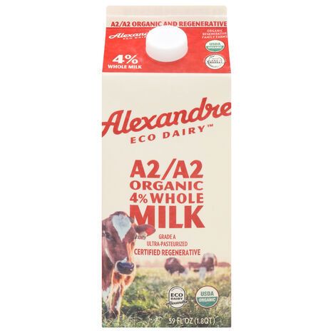 Alexandre Eco Dairy Milk, 4% Whole, Organic, A2/A2 - 59 Fluid Ounces