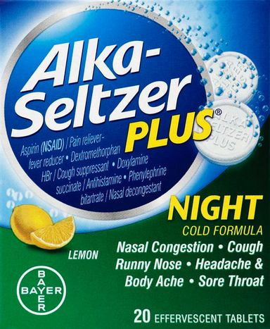 Alka-Seltzer Cold Formula, Night, Effervescent Tablets, Lemon - 20 Tablets