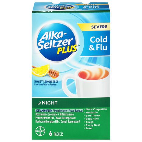 Alka-Seltzer Plus Cold & Flu, Severe, Night, Packets, Honey Lemon Zest - 6 Packets