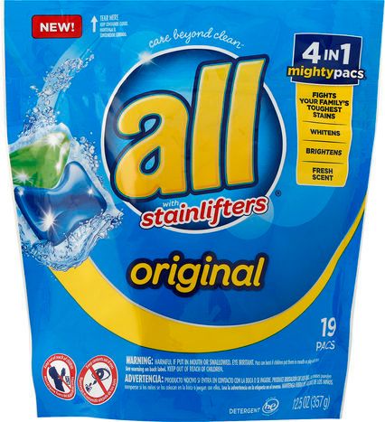 all Detergent, with Stainlifters, Original, Pacs - 19 Pacs