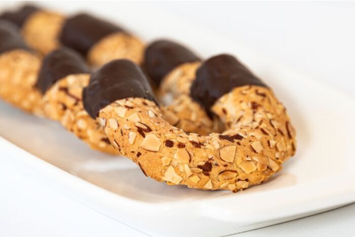 Kernel paste, sliced natural almonds, bittersweet chocolate