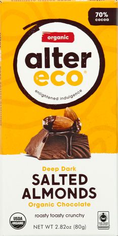 Alter Eco Dark Chocolate, Organic, Deep Dark Salted Almonds, 70% Cocoa - 2.82 Ounces