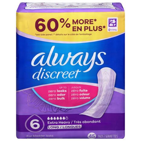 Always Discreet 6 Extra Heavy Long Pads - 45 Pads