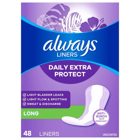 Always Liners, Daily Extra Protect, Long, Unscented - 48 Liners