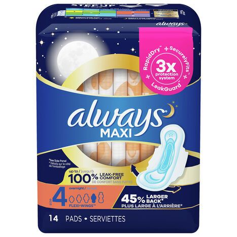 Always Pads, Flexi-Wings, Overnight, Size 4 - 14 Pads