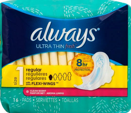 Always Pads, Ultra Thin, with Flexi-Wings, Regular, Clean Scent, Size 1 - 16 Pads