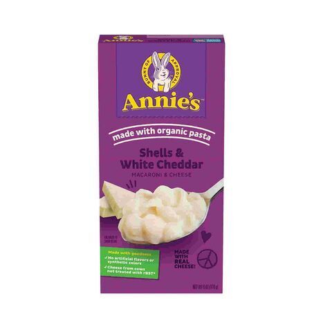 Bring creamy, cheesy goodness to your family dinner table with Annie's White Cheddar Macaroni and Cheese. Made with organic macaroni shells and real white cheddar cheese from cows not treated with rBST, these shells and cheese are perfect for lunchtime, dinnertime, or anytime you're in the mood for something downright delicious. Ready in just 10 minutes, all you have to do is boil and drain the pasta shells, heat 3 tablespoons of lowfat milk in a medium saucepan, and mix in the cheese packet, then add the cooked pasta and stir well to combine. Serve as a side dish, use it to prepare baked bacon mac and cheese for your next family meal, or pair it with other kids food favorites like chicken nuggets. [Description provided by Annie's.] Organic Pasta (Organic Wheat Flour), Dried Cheddar Cheese (Cultured Pasteurized Milk, Salt, Non-Animal Enzymes), Whey, Butter (Pasteurized Cream, Salt), Nonfat Milk, Salt, Sodium Phosphate, Silicon Dioxide (For Anticaking).