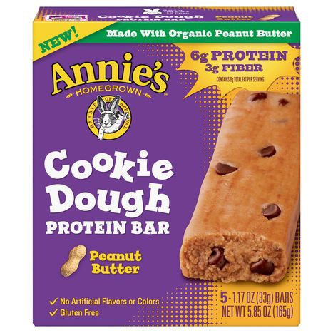 Annies Protein Bar, Cookie Dough, Peanut Butter - 5 x 1.17 Ounces