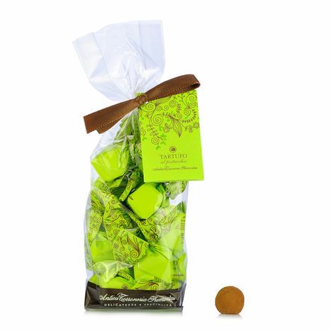 Pistacchio Truffle Chocolate from Antica Torroneria Piemontese are artisanally crafted in Piemonte with the best ingredients, following an ancient recipe. If you love pistacchio, you can't miss this product!nnEnjoy the Pistacchio Truffle Chocolate as a dessert for a sweet taste of Italy, or give as a unique culinary gift.nnCompany History:nAntica Torroneria Piemontese has been creating confections since 1885, all based on the IGP-certified Piedmont hazelnut, and bakery products made in accordance with Piedmontese artisanal tradition. Respect for tradition handed down from generation to generation ensures strict compliance with historic methods, while the choice of high quality ingredients allows the firm to make exceptional products in terms of taste and consistency. Antica Torroneria has created a company where the respect for tradition and the search for innovation coexist every day.