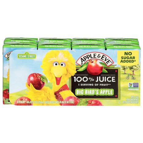 Apple & Eve No Sugar Added Sesame Street Big Bird's Apple Juice - 8 x 4.23 Fluid Ounces