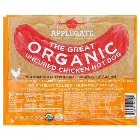 APPLEGATE The Great Organic Hot Dog, Uncured, Chicken