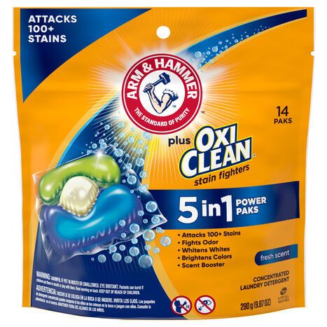 Arm & Hammer Laundry Detergent, Concentrated, Stain Fighters, Fresh Scent, 5 in 1, Power Paks - 14 Paks