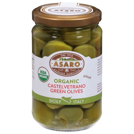 Asaro Green Olives, Organic, Castelvetrano, Pitted - 4.5 Ounces
