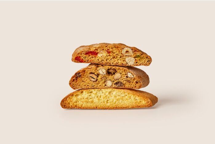 Hand-cut, twice-baked Italian biscuits, perfect for dipping in coffee, milk, or an after dinner drink. Sold in 1 pound increments. Always available in three flavors: Anise: Isgro's original recipe for a delicate, almost fluffy, take on an anise flavored biscotti. Fruit & Nut: Classic crunchy biscotti studded with candied fruit and hazelnuts. Contains tree nuts. Chocolate Chip Almond: Classic crunchy biscotti loaded with toasted whole almonds and chocolate chips. Contains tree nuts. Ask about seasonal flavors, including lemon blueberry in summer and cranberry white chocolate, espresso, and cinnamon raisin in winter.