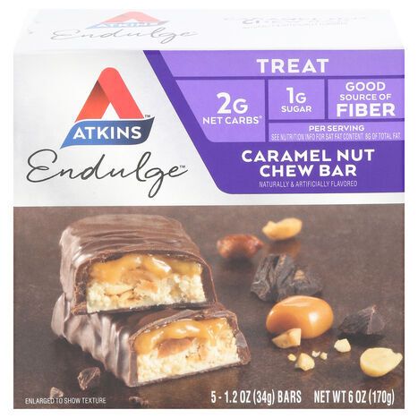 Atkins Chew Bar, Caramel Nut, Treat - 5 x 1.2 Ounces