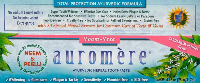 Auromere Toothpaste, Ayurvedic Herbal, Foam-Free, Cardamom-Fennel Flavor - 4.16 Ounces
