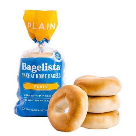Sometimes you can’t beat a classic New York plain bagel. Crispy on the outside and chewy on the inside, this is Bagelista in its purest form! Each bagel in this four-pack come partially baked and can be ready to enjoy in as little as five minutes. [Description provided by Bagelista.] (Note: Store frozen or refrigerated. Do not microwave.) Enriched Wheat Flour (Wheat Flour, Malted Barley Flour, Niacin, Iron, Thiamine Mononitrate, Riboflavin, Folic Acid), Water, Contains 2% Or Less Of: Corn Flour, Cultured Wheat Flour, Non-GMO Soybean Oil, Ascorbic Acid, Enzymes, Salt, Sugar, Yeast, Sesame.