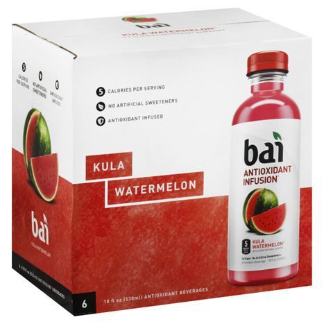 Filtered Water, Bai Proprietary Sweetener Blend (Erythritol, Stevia Leaf Extract), Natural Flavors, Citric Acid, Watermelon Juice Concentrate, Vegetable Juice (for Color), Coffeefruit Extract, White Tea Extract, Malic Acid, Vitamin C (Ascorbic Acid), Sodium Citrate.