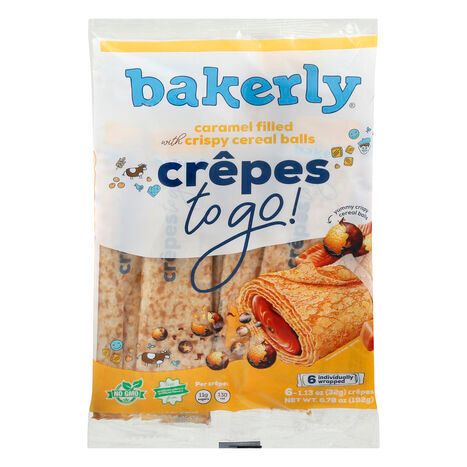 Bakerly Crepes to Go, Caramel Filled with Crispy Cereal Balls - 6 x 1.13 Ounces