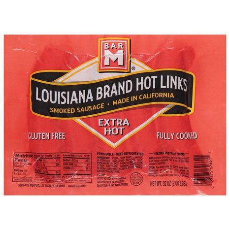 Bar M Hot Links, Extra Hot, Louisiana Brand - 32 Ounces
