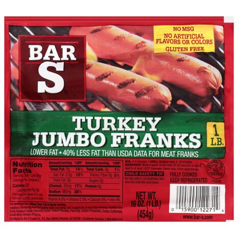 Bar S Turkey Jumbo Franks - 16 Ounces
