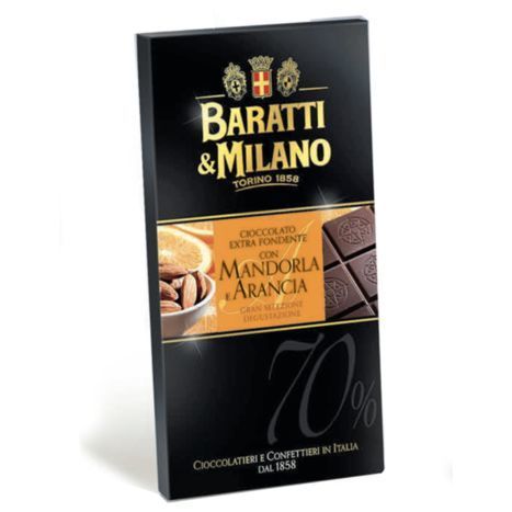 Baratti Milano Dark Orange Almond Chocolate Bar - 2.64 Ounces