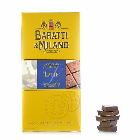 The Latte or Milk Chocolate Bar from Baratti & Milano is made with the finest ingredients like selected cocoa beans from Ecuador and Ghana. Many companies buy chocolate already processed into cacao mass but not Baratti & Milano. They work the cacao mass, coaching it at a very low temperature in effort to have the least bitter chocolate. The chocolate is then worked until it is smooth and velvety, and it is then blended with the finest sugar, vanilla from Madagascar, and the best European milk from grass fed cows in Normandy, France. \n\n\nFounded in 1858 by Ferdinando & Eduardo Baratti, Baratti & Milano is part of the history and tradition of Italian confectionary. What began as a small café in the heart of Turin, which is nowadays known as a historic place in Italy, it has become one of the most prestigious Italian chocolate brands in the world. They take great care in choosing and checking the raw materials in the countries where they are cultivated and harvested such as in Ecuador and Ghana. From the beginning to the end, Baratti & Milano pays very close attention to the entire production process of their confectionary specialities in their facility in Bra. Traditional to the Piedmont region, these specialities include: the Gianduiotti, Cremini, Cuneesi, Braidesi, Praline alla Nocciola Piemonte.\n\n\nEnjoy any time on-the-go or with a cappuccino for an afternoon treat or with red wine for dessert.