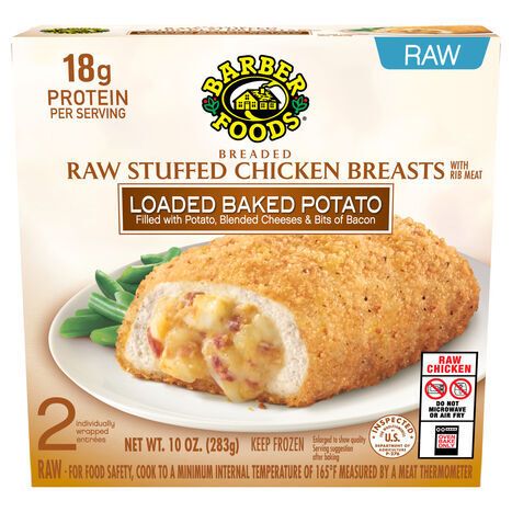 Barber Foods Chicken Breasts, with Rib Meat, Raw Stuffed, Loaded Baked Potato, Breaded - 2 Entrees
