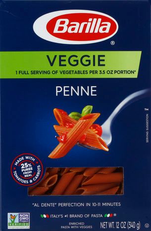 Semolina (Wheat), Durum Flour, Tomato Puree, Carrot Puree (Carrot, Lemon Juice Concentrate, Water), Niacin, Iron (Ferrous Sulfate), Thiamine Mononitrate, Riboflavin, Folic Acid.