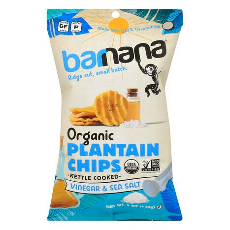 barnana Plantain Chips, Organic, Vinegar & Sea Salt, Kettle Cooked - 5 Ounces