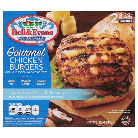 Bell & Evans Chicken Burgers, Roasted Portabella & Swiss, Gourmet, Air Chilled - 2 Burgers