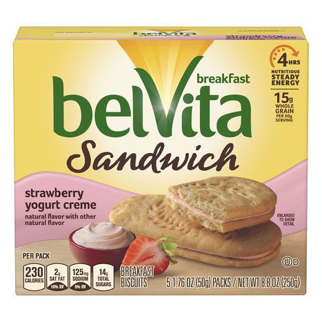 belVita Breakfast Biscuits, Strawberry Yogurt Creme, Sandwich - 5 x 1.76 Ounces