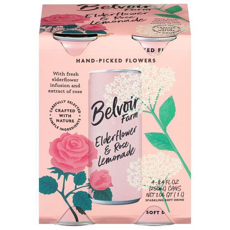 Belvoir Farm Sparkling Soft Drink, Elderflower & Rose Lemonade - 4 x 8.4 Fluid Ounces