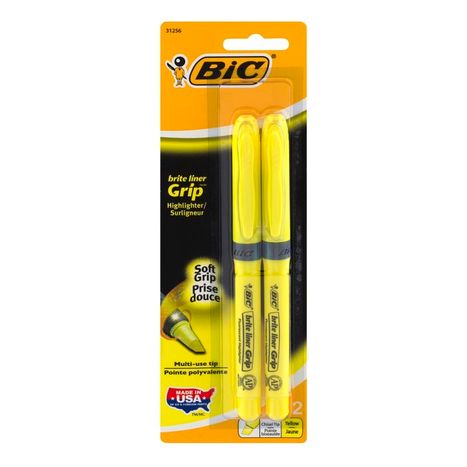 BiC Brite Liner Grip Highlighter Chisel Tip Yellow - 2 Count