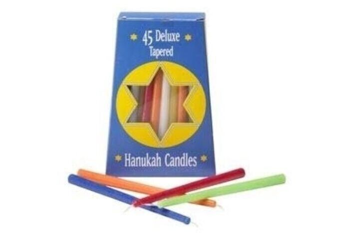 Biederman & Sons - 45 Deluxe Tapered Hanukah Candles, Assorted Colors, 3/8" diameter x 6" tall