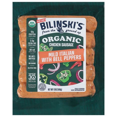 Bilinski's Chicken Sausage, Organic, Mild Italian with Bell Peppers - 12 Ounces