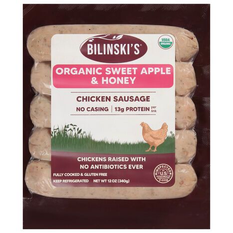 Bilinski's Chicken Sausage, Organic, Sweet Apple & Honey - 12 Ounces